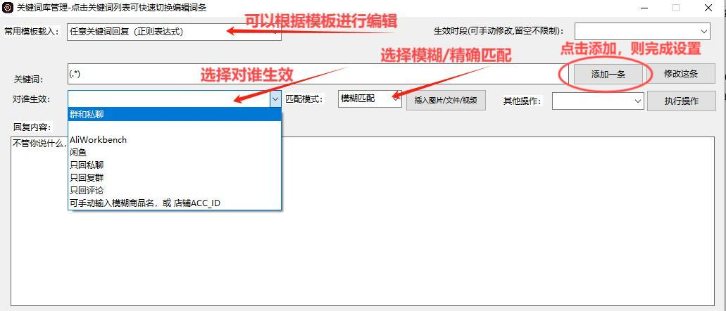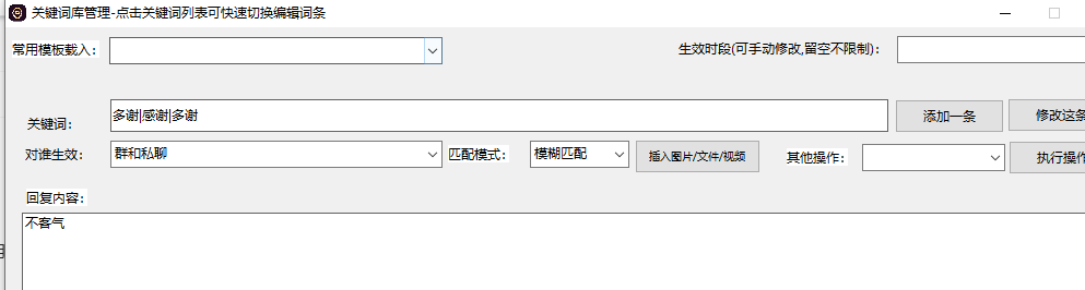 在不同的功能下,设置回复内容的方法是一样的规则。(用过我们公司开发的其他软件,原先的设置方法与现在也是一样的。)比如快捷回复中你设置了多条回复的内容,将内容复制到关键词回复,流程回复中,也是一样的回复效果,只需要学会了设置关键词回复,其他内容都是一样的设置方法哦。