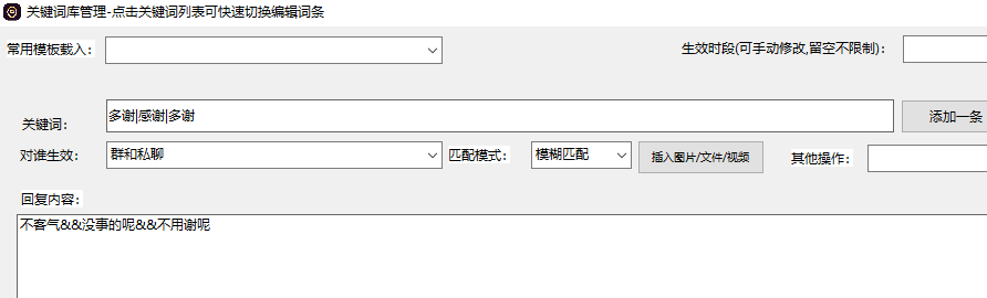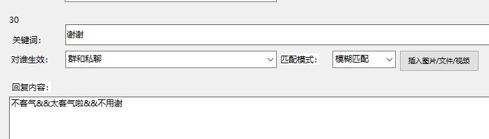 此时可以使用随机符号&&分隔,比如我要随机回复“不客气呢”或是“没事的呢”