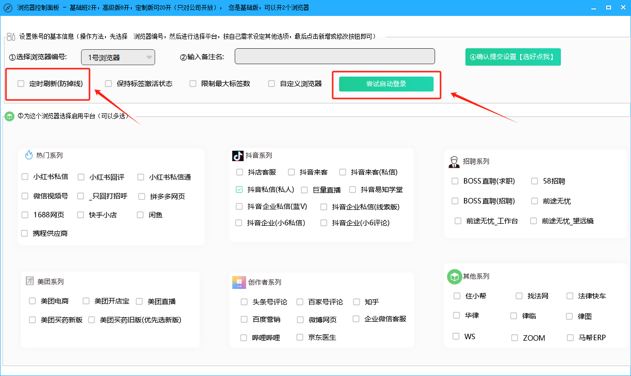 浏览器模式下,如果平台会掉线需要重新登录才可以使用,可以设置自动登录。