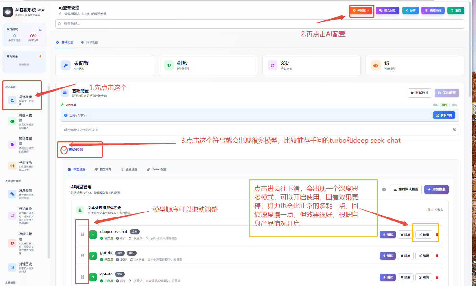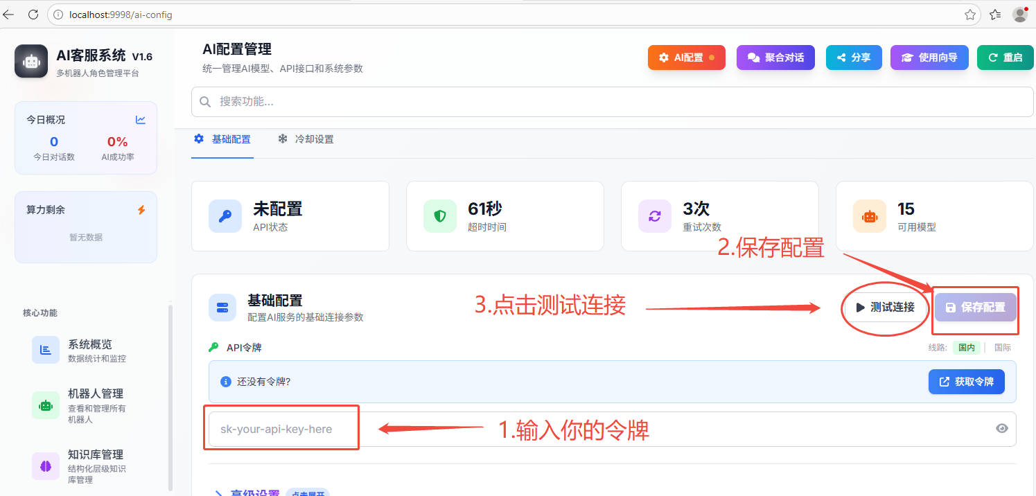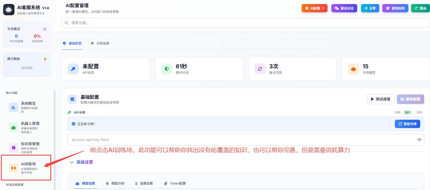 1.绑定算力令牌,AI接待需要调动模型消耗算力(试用体验的亲,可以联系我们的工作人员获取测试令牌)
